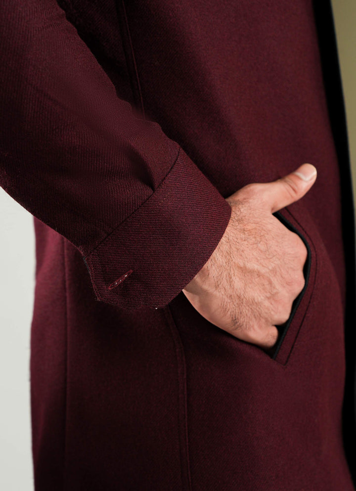 Double Collar Jacket - Worsted Tweed Maroon Plain