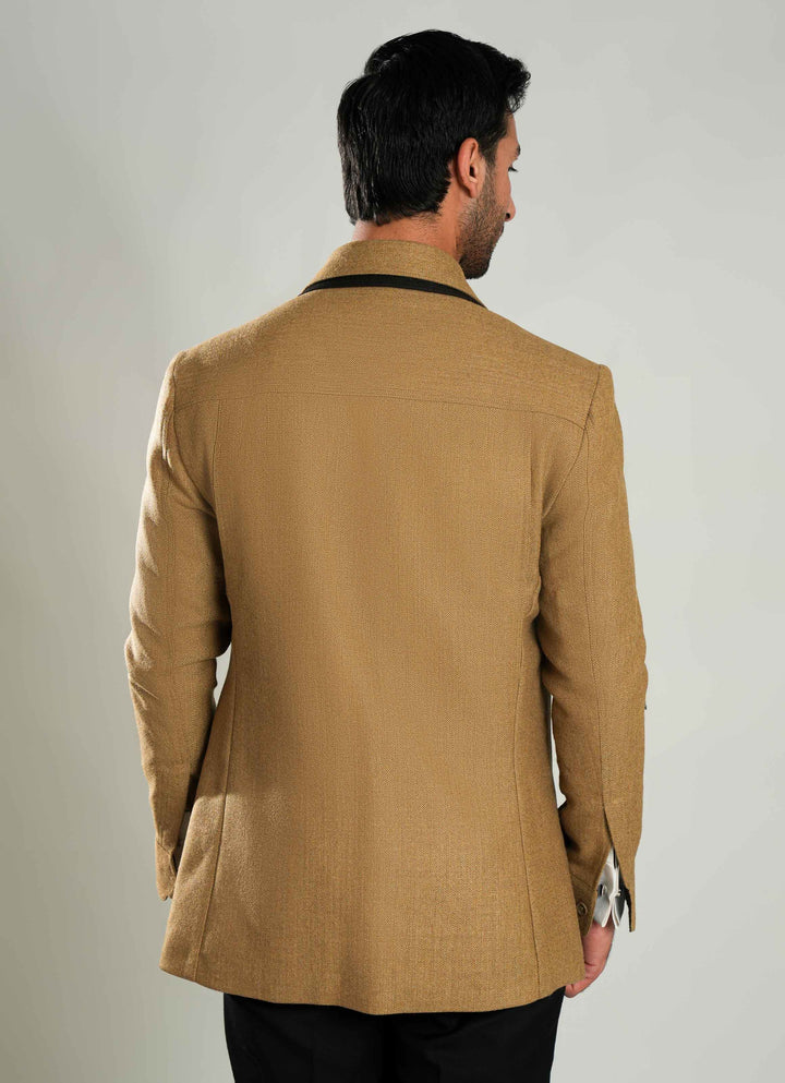 Brown Checks, Wool Rich Worsted Tweed Double Collar Jacket