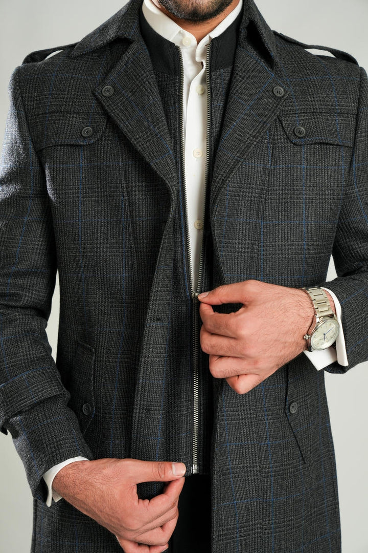 Double Jacket - Worsted Tweed Grey & Black Checks