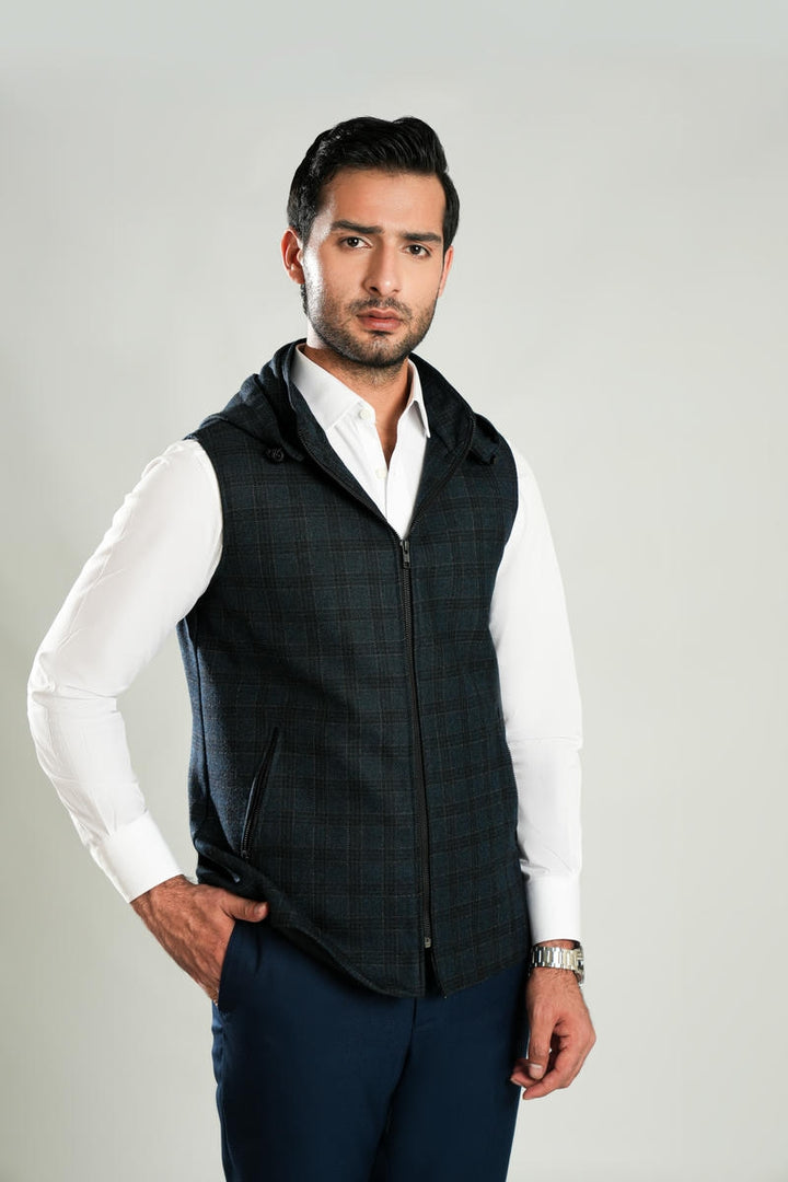 Discover Lawrencepur’s wool-rich Worsted Tweed sleeveless hoodies for men. Available in warm tones and classic patterns, these high neck hoodies are ideal for winter layering and casual outdoor wear.